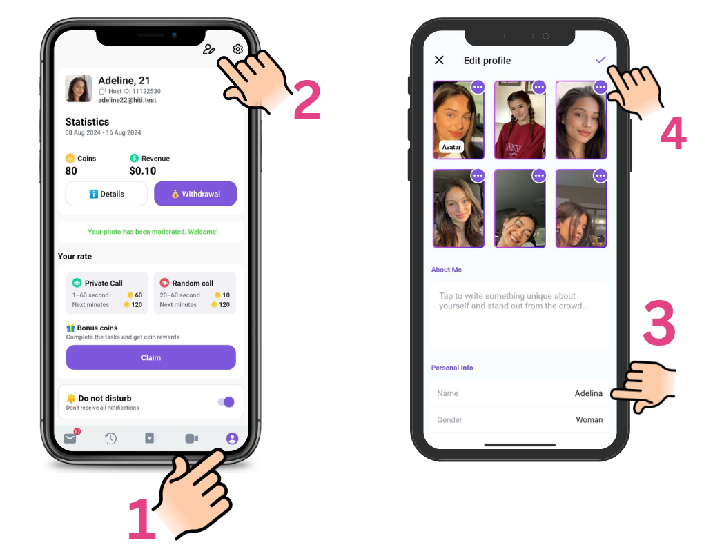 - Ім’я можна змінювати раз на добу. Ми рекомендуємо не змінювати ім’я занадто часто, щоб твої фани легко тебе впізнавали. Ім’я – це частина твоєї унікальності.
